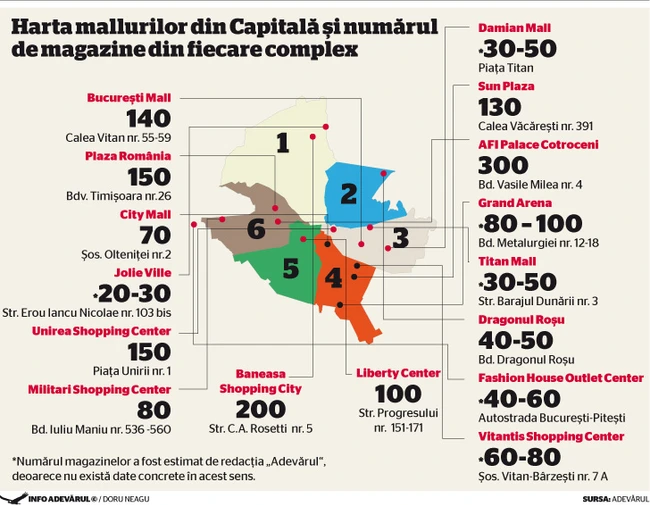0Pasionații de shopping care își petrec timpul liber căutând cele mai bune oferte și care se distrează în timp ce fac cumpărături beneficiază de 16 malluri, unele mai ofertante decât altele.