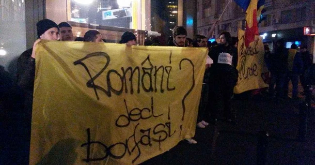 UPDATE 20.40 Protestul a fost unul paşnic şi s-a încheiat fără a fi semnalate incidente. Protestatarii au scandat: „Trăiască Moldova, Ardealul şi Ţara Românească“. Câteva persoane au fost legitimate.