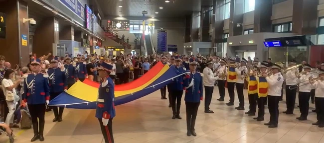 0Surpriză pentru călătorii care au ajuns la Aeroportul „Henri Coandă” luni, 26 iunie. Aici au avut parte de un „flash mob”, oferit de Jandarmeria Română, care a prezentat onorul și au intonat Imnul României.