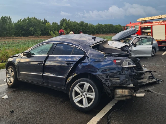 În impact au fost implicate trei autovehicule, fiind nevoie de intervenţia echipajelor de descarcerare. Din cauza ploii torenţiale și a vântului puternic, misiunea salvatorilor a fost îngreunată.