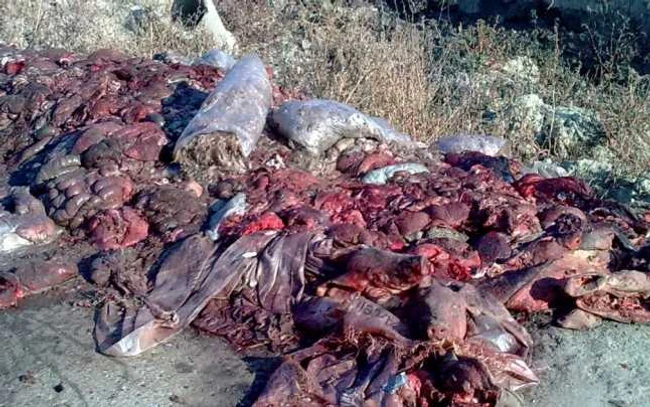 Autorităţile din Buzău caută abatorul care a aruncat trei tone de carne şi resturi animale pe marginea unui drum judeţean