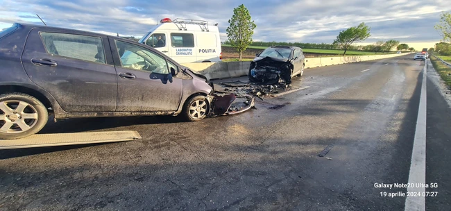 Polițiștii trebuie să afle care au fost împrejurările în care două autoturisme s-au putut întâlni pe partea de șosea mărginită de parapetul din beton.
