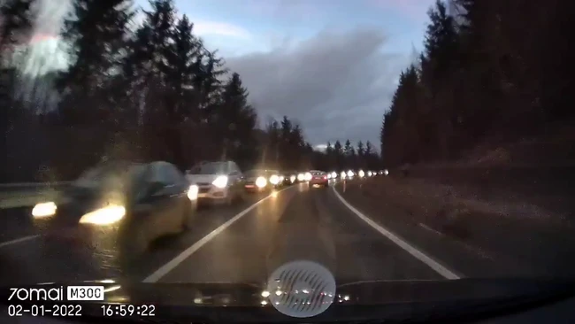 Coloană de maşini, pe Valea Buzăului, la finalul vacanţei de Anul Nou VIDEO