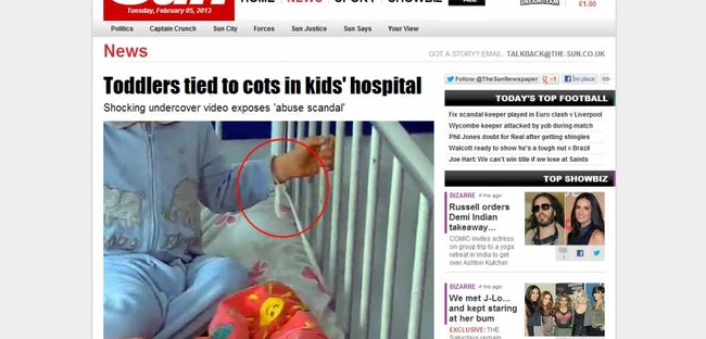 Scandalul a apărut după ce mamele copiilor din Spitalul din Buzău au cerut reporterilor locali să relateze condiţiile tulburătoare, scriu reporterii de la „The Sun”, care au postat şi o înregistrare video cu micuţii legaţi de pat în unitatea sanitară.