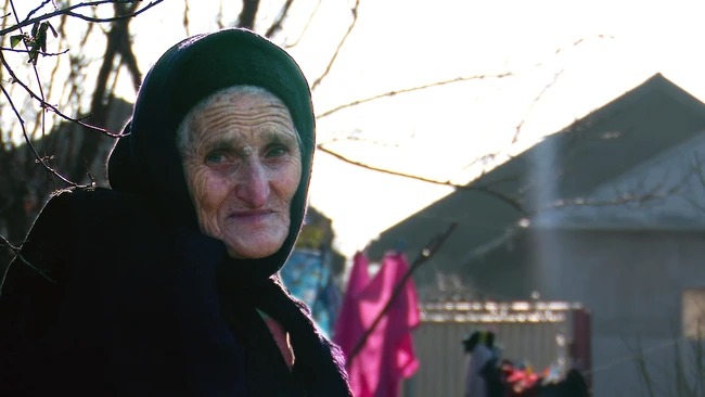 O surprindem pe femeie în curte, la întins rufe, îmbrăcată mult prea subțire pentru gerul de afară, de minus cinci grade în termomentru. Ne asigură că nu simte frigul, pentru că au călit-o iernile tinereții sale, când satele erau frecvent acoperite de nămeți cât casa.