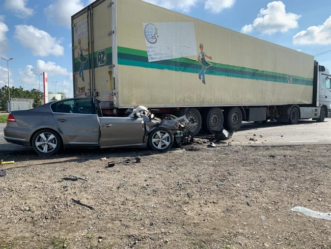 Coliziunea s-a produs la intersecţia DN 2B cu un drum care duce în curtea unui abator de pui. Autoturismul cu numere de Galaţi care circula dinspre Buzău către Brăila s-a izbit violent de remorca unui TIR care tocmai vira spre stânga.