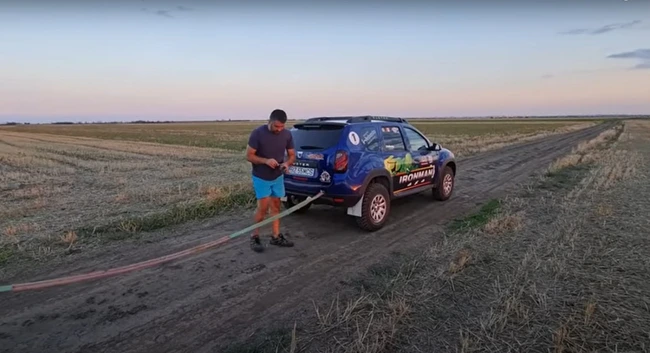 În cadrul experimentului, Duster-ul lui Cosmin a tractat un ansamblu de tractoare, remorci cu baloţi de paie, şi autoutilitare, care împreună ar fi cântărit peste 30 de tone, după aprecierea autorului testului.
