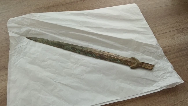 0O spadă din bronz, veche de aproape 4.000 de ani, a fost scoasă la lumină întâmplător, de către un muncitor care efectua săpături pe albia râului Buzău. Exponatul, extrem de valoros din punct de vedere istoric, a ajuns în posesia Muzeului Judeţean de Istorie Buzău iar pe viitor va fi arătata publicului larg, în cadrul unei expoziţii.