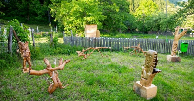Pe lângă expoziţia „Amber of the Moment”, în curtea centrului cultural din Aluniş se pot vedea câteva sculpturi din lemn ce vor rămâne expuse permanent sub cerul liber.