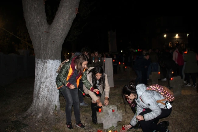 GALERIE FOTO Peste o mii de elevi din Buzău au aprins candele la mormintele militare din Cimitirul Eroilor