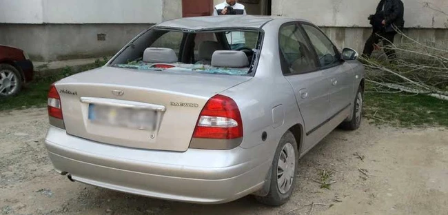 Crengile copacului au căzut peste plafonul, luneta şi portbagajul autoturismului. Autoturismul are asigurare CASCO, aşa că proprietarul nu va scoate bani din buzunar pentru reparaţia maşinii.