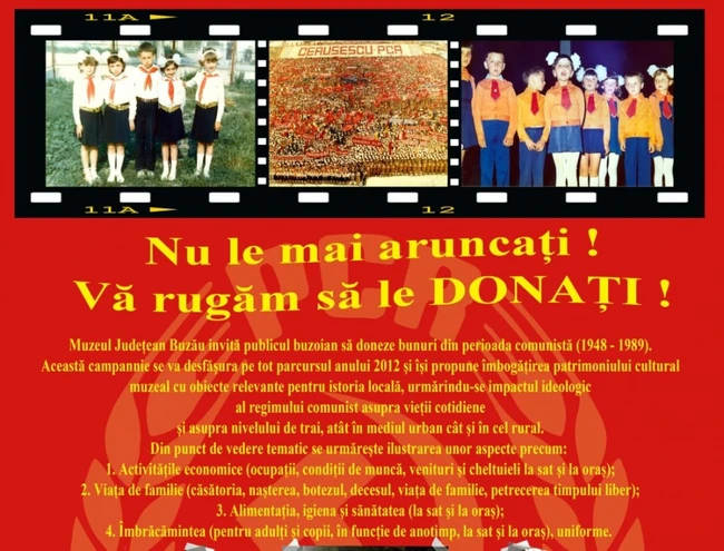 0Muzeul Judeţean Buzău lansează campania: “Nu le mai aruncaţi! Vă rugăm să le DONAŢI!” prin care invită buzoienii să doneze bunuri din perioada comunistă (1948-1989).