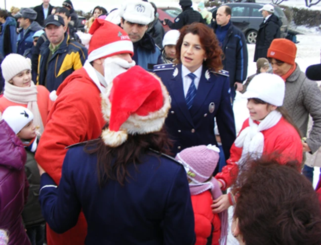 Poliţiştii îl întâmpină pe Moş Nicolae cu un spectacol