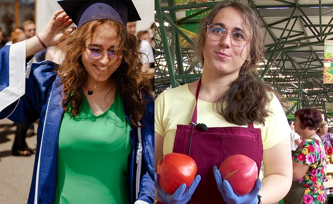 „Studiind biologia, mi se pare și mai interesant că încep să-mi dau seama ce se întâmplă aici. Știu cum crește planta, știu cum absoarbe apa. Noi cultivăm două soiuri, roșii roz și inimă de bou. Sunt în primul rând ciudățele prin faptul că sunt foarte mari”, spune Diana.