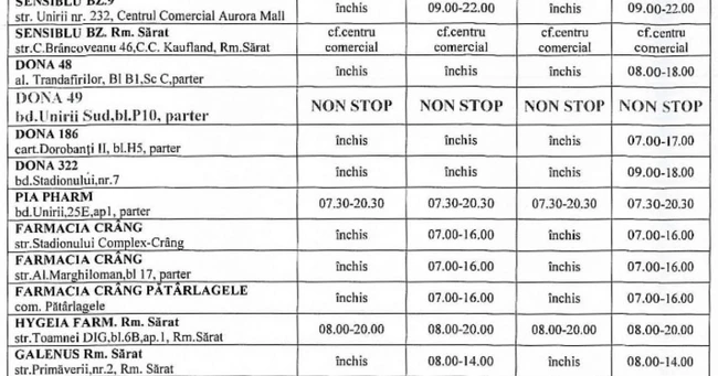 Programul farmaciilor şi centrelor de asistenţă medicală din judeţul Buzău, în perioada sărbătorilor