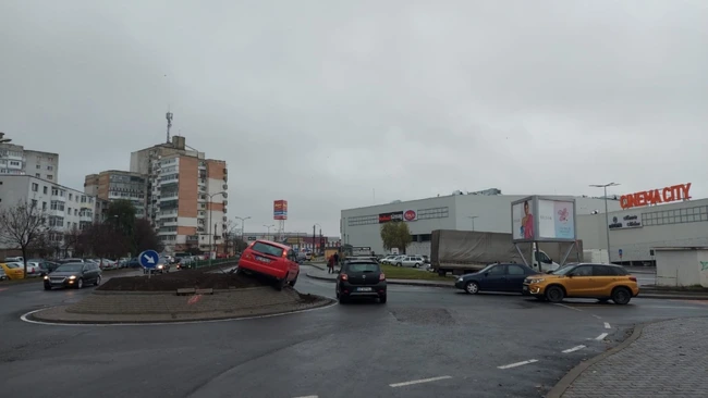 Încă un sens giratoriu neiluminat corespunzător face victime. De data aceasta, noul rond de pe strada Frăsinet a fost luat la ţintă de un şofer neatent.