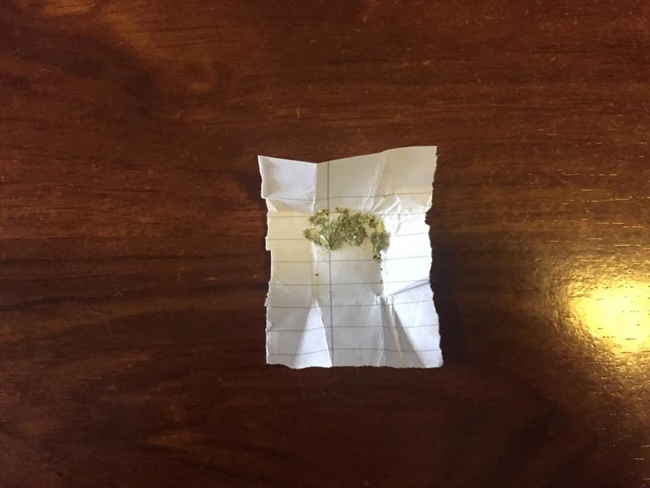 În urma controlului corporal efectuat, asupra acestuia a fost găsit un pliculeţ cu un conţinut vegetal uscat de culoare verde.