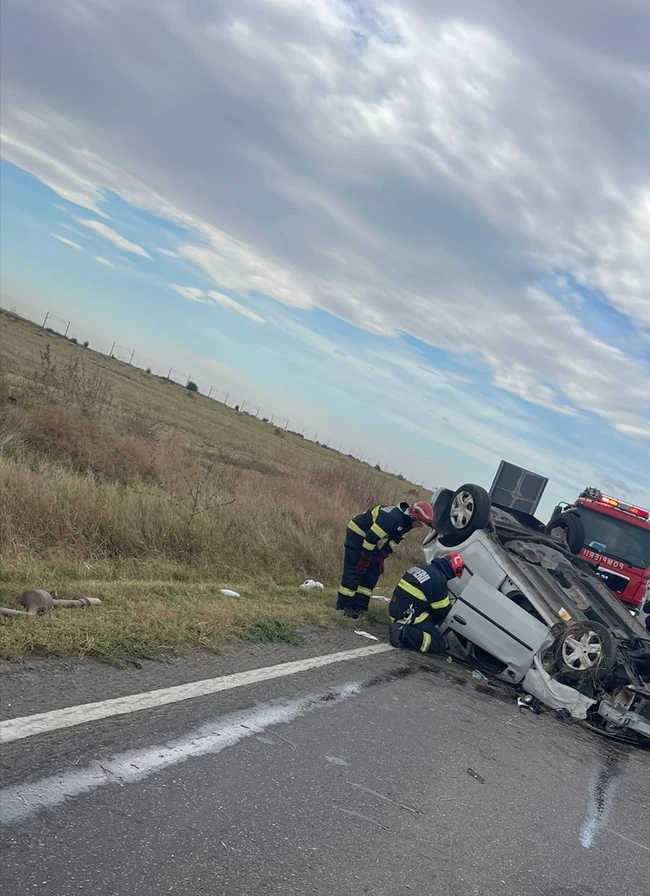 Trei răniți, pe o șosea din Buzău, după ce un autoturism s-a răsturnat. Printre victime, o fată de 13 ani