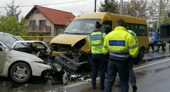 Un microbuz care transporta copii, implicat într-un accident pe DN 10. A fost activat Planul Roşu VIDEO