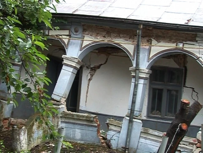 Cea mai afectată este clădirea stăreţiei, aproape ruptă în două de alunecare. Pereţii sunt rupţi, iar în alei sunt crăpături de aproape un metru.