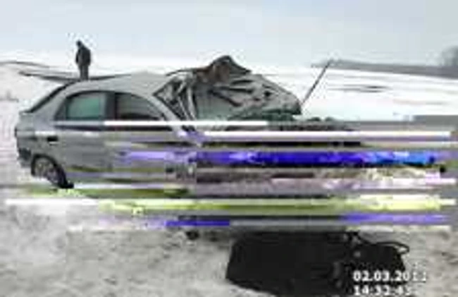 Un autoturism Renault Laguna, condus de un buzoian, a intrat brusc în derapaj și s-a răsturnat de mai multe ori, pe câmp. Resturile mașinii au fost împrăștiate pe o rază de aproximativ 50 de metri. Atât conducătorul auto, cât și pasagerul din dreapta au suferit răni grave, fiind preluați de un echipaj SMURD.