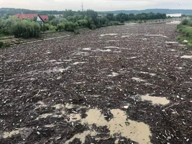 Apa scursă de pe versanţi a adunat gunoaiele de prin satele de munte şi le-a împrăştiat pe tot cursul râului. Prefectul Carmen Ichim susţine că PET-urile şi celalalte deşeuri au fost aduse de viiturile care au lovit gospodăriile din zona de munte, în special de pe raza judeţului Covasna.
