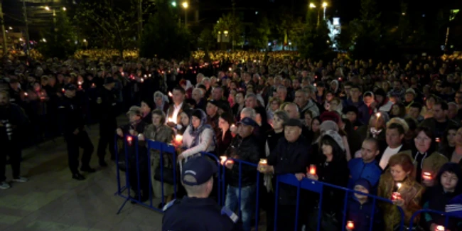 Cu câteva minute înainte de miezul nopţii, Înaltul Ierarh a ieşit din catedrală şi i-a invitat pe buzoieni să vină să ia din lumina sfântă adusă direct de la Ierusalim.
