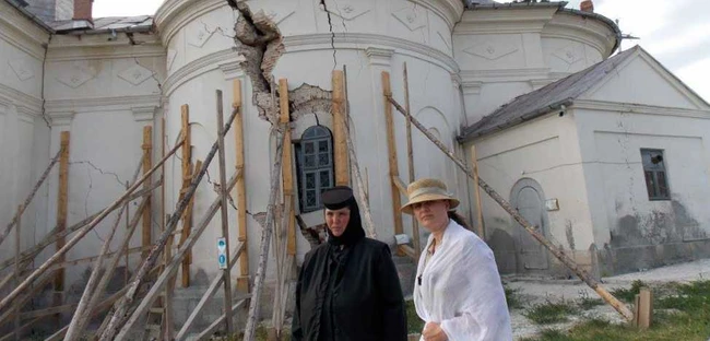 VIDEO Sfârşit de lume pentru 25 de călugăriţe de la mănăstirea buzoiană Răteşti: clădirea se dărâmă pe ele