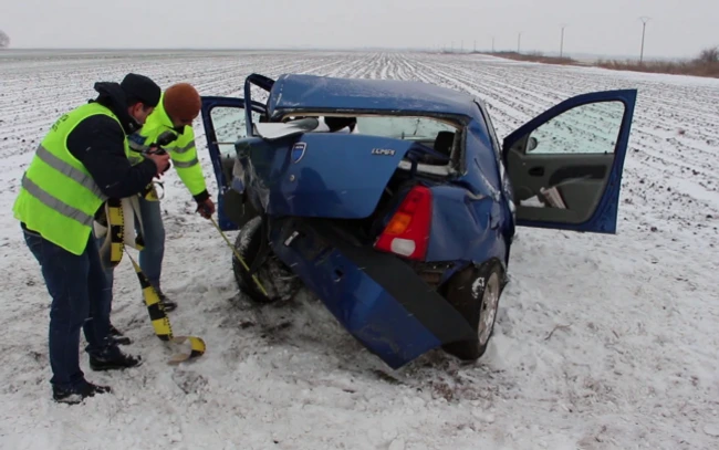 Loganul a fost aruncat pe câmp, în dreapta, iar Chrysler-ul a depăsit celălalt sens şi a ieşit tot în câmp. Şoferul Loganului a murit pe loc, iar soţia sa a fost grav rănită. Două fetiţe de 5 si 7 ani, aflate în bolid, au scăpat cu răni uşoare.