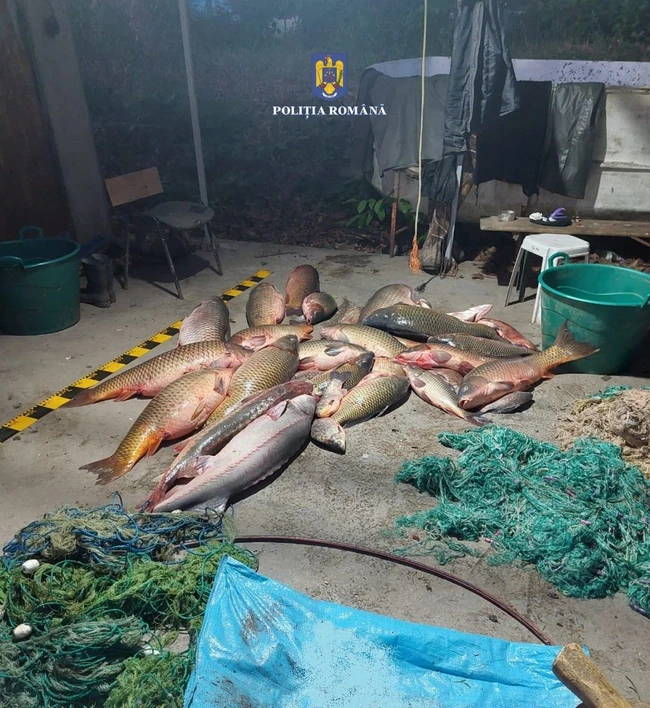 În urma cercetărilor au fost depistate şi ridicate o barcă pneumatică,opt plase din material textil şi 225 kg de peşte din speciile morun, nisetru, crap, plătică şi şalău.