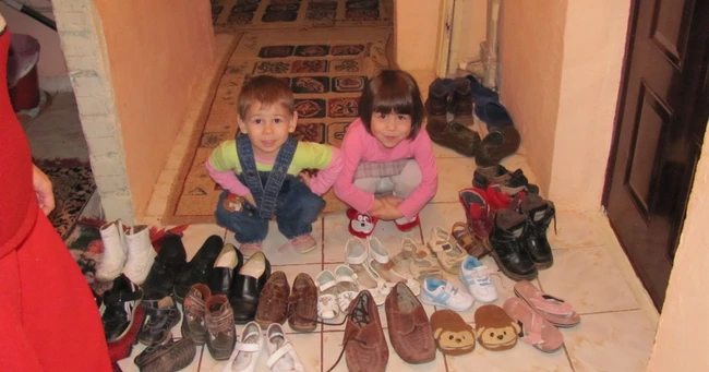 Când cei mici au auzit că mâine seară vine moş Nicolae cu daruri au început să alinieze toată încălţămintea pe holul apartamentului.. „Eu vreau un cadou. O păpuşă frumoasă“, spune Liana. Liviu nu ştie exact ce vrea, dar cu siguranţă că se va bucura de orice cadou pe care moşul şi-l va permite să-l achiziţioneze. Când li s-a spus că nu vine moşul, dacă nu sunt cuminţi şi nu strâng toată încălţămintea, cei doi au pus într-un minut toate încălţările la loc.