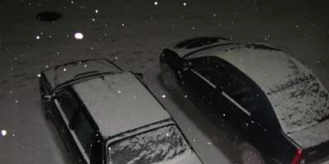 0Zăpada s-a aşezat pe jos şi pe maşini