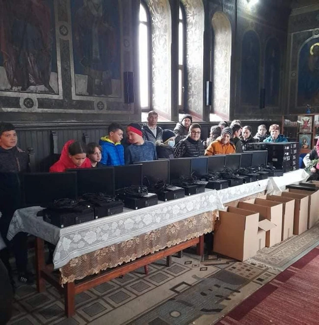 Calculatoare pentru copii, dăruite la biserica din comuna Cuza-Vodă, Călăraşi