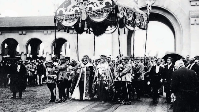 Apoi, cei doi suverani au ieșit din catedrală sub faldurile unui baldachin. Au fost aclamați de 30.000 de spectatori și de 15.000 de soldați.