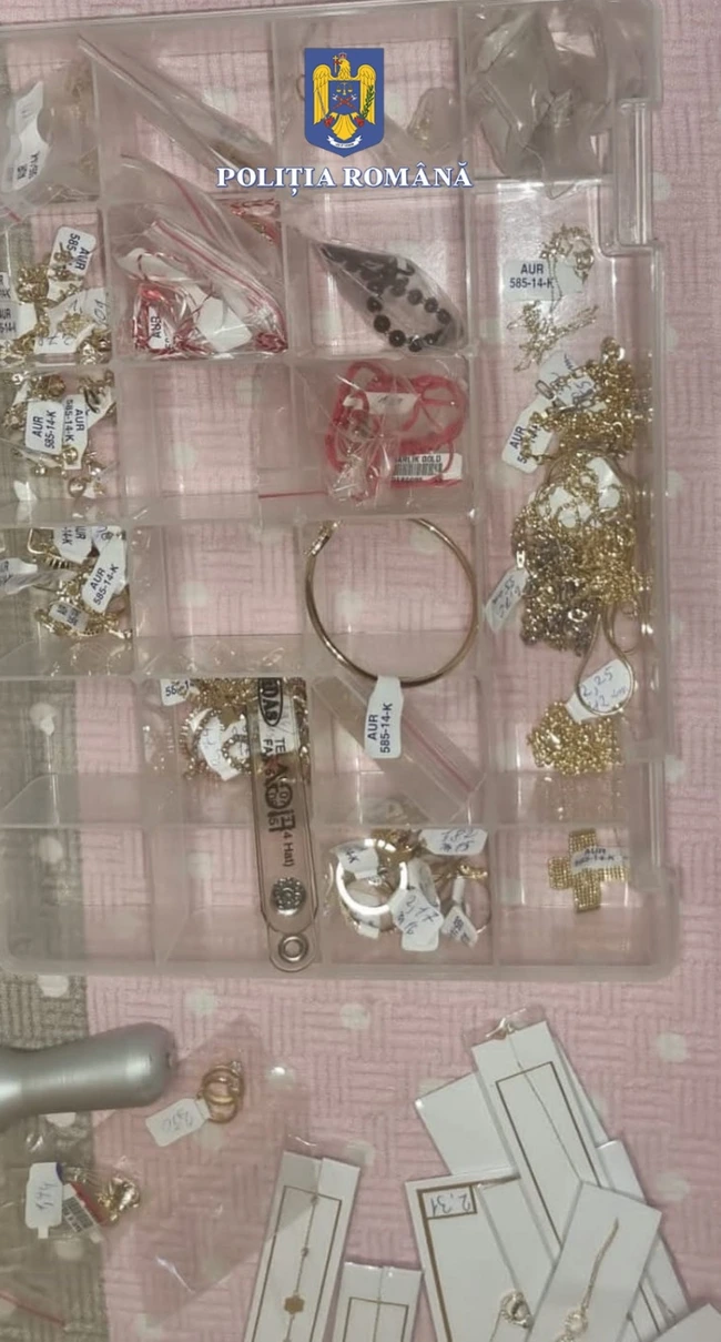 Poliţiştii din Călăraşi au ridicat în urma unei acţiuni de prindere în flagrant delict şi a 3 percheziţii domicilare peste 730 de grame de bijuterii de aur, aproximativ 300 de grame de bijuterii de argint, 1.135 de parfumuri, 185 de articole vestimentare, 1.800 de ţigarete, 5.255 de euro, 16.155 de lei şi 205 lire turceşti.