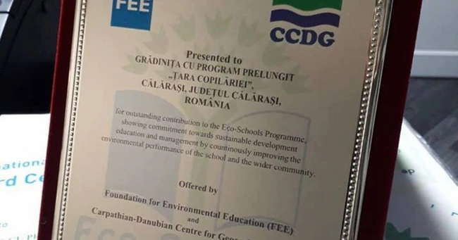 “Anul acesta, la cea de-a XX-a ediţie a Seminarului Naţional ”Parteneriat în educaţia pentru mediul înconjurător” cu tema ”Cultivarea valorilor naţionale în educaţia pentru mediu”, ediţie aniversară organizată de Centrul Carpato-Danubian de Geoecologie Bucureşti, Grădiniţa cu Program Prelungit ”Ţara Copilăriei” Călăraşi a primit Placheta aniversară (10 ani cu statut de Eco-Şcoală şi distincţia Steagul Verde). Scopul adevăratei educaţii ecologice va fi realizat numai atunci când se va reuşi ca elevii – cetăţenii de mâine – să fie convinşi de necesitatea ocrotirii naturii şi să devină factori activi în acţiunea de conciliere a omului cu natura. La mulţi ani tuturor Eco-Şcolilor din ţară şi din lume!”, a explicat Dana Soare, directorul instituţiei de învăţământ.