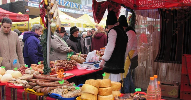 Cârnaţi vânătoreşti şi de porc, pastramă, tobă, lebăr, muşchi împănat şi afumat, alături de brânză de burduf în coajă de brad, caşcaval şi telemea din Mărginimea Sibiului, toate le-au făcut cu ochiul clienţilor. Oamenii s-au înghesuit să cumpere, deşi preţurile porneau de 25 de lei un kilogram de brânză şi ajungeau până la 45 de lei muşchiuleţul cu mirodenii. O masă aşa de îndestulată nu putea fi stropită decât cu palincă din Ardeal, veche de trei ani, care se vindea cu 50 de lei litrul.