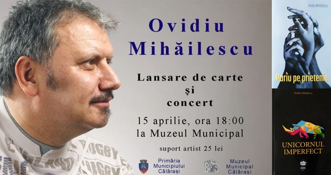 0Muzeul Municipal Călăraşi găzduieşte vineri, 15 aprilie, la ora 18.00 o nouă lansare de carte a cantautorului Ovidiu Mihăilescu. După doi ani de pandemie, călărăşenii se pot bucura de un spectacol pe cinste.