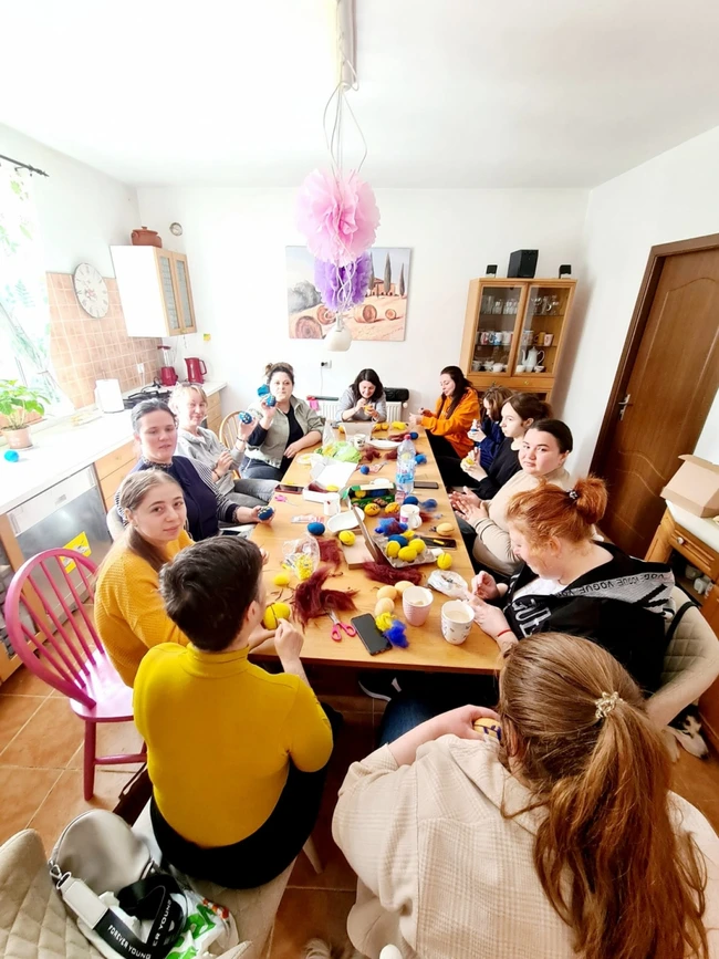 „Consider că orice ajutor, cât de mic, este binevenit. Binele putem să-l facem fiecare, puţin câte puţin. Ne-am pus casa la dispoziţie şi niciodată nu am găzduit mai puţin de 8 persoane. Au fost multe serii de ucraineni, de câte 10-12 persoane, majoritatea în tranzit, iar ultimii pe care i-am primit au stat la noi 2 luni. Într-o seară, în sufragerie, mi-a venit ideea să lucrăm împreună, să facem ceva creativ,” explică Mirela Podoiu. A fost suprinsă să constate că femeile din Ucraina sunt deschise, prietenoase şi dornice de a se face utile.