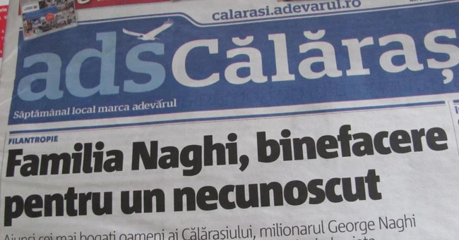 „Familia Naghi, binefacere pentru un necunoscut“ din pagina 4 dă la iveală o poveste impresionantă. Ajunşicei mai bogaţi oameni ai Călăraşiului, milionarul George Naghi şi soţia sa, Alina, i-au sprijinit pe cei în suferinţă salvându-le viaţa.