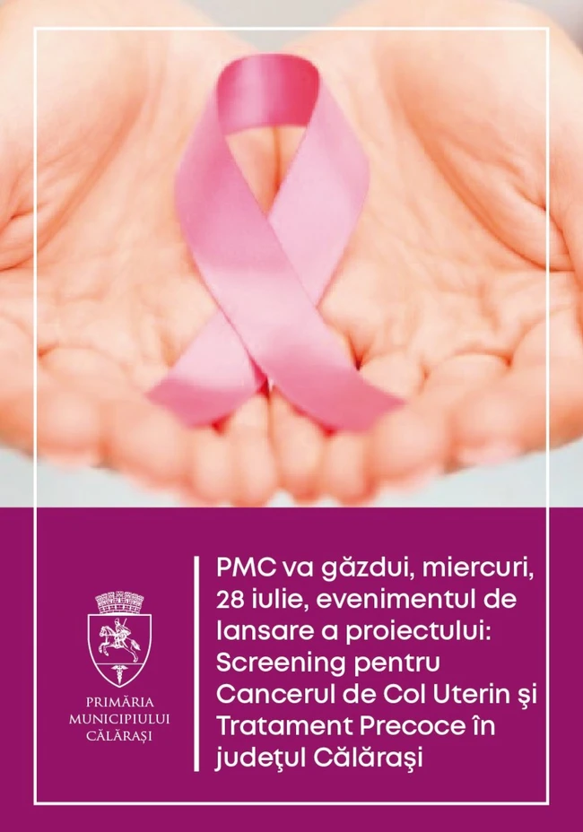 0Primăria Municipiului Călăraşi va găzdui, miercuri, 28 iulie, evenimentul de lansare a proiectului Screening pentru Cancerul de Col Uterin şi Tratament Precoce în judeţul Călăraşi.
