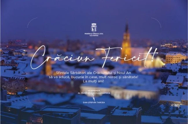 Felicitarea tradiţională de Crăciun trimisă de Primăria Cluj-Napoca nu este în concordanţă cu politica urbanistică a oraşului, susţine Andi Daiszler, activist civic clujean şi fondatorul „Lights On Romania”, un festival de instalaţii de lumină care are loc în fiecare an în lunile noiembrie/decembrie în oraşul Cluj-Napoca.