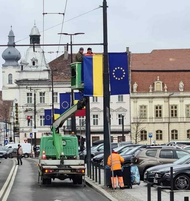 „Din cei 4-5 stâlpi din acea zonă unde erau arborate steagul României şi cel al UE, pe unul au fost arborate, timp de trei zile, steagul Ucrainei şi cel el UE. Pe restul, apare steagul Ucrainei alături de cel al României. Am dorit să semnalăm un moment istoric: acela că Parlamentul european a decis accelerarea procedurii de aderare Ucrainei la UE. Eu am cerut, la reuniunea din Marsilia, ca şi Moldova să fie în aceeaşi ecuaţie de aderare accelerată”, a arătat primarul.