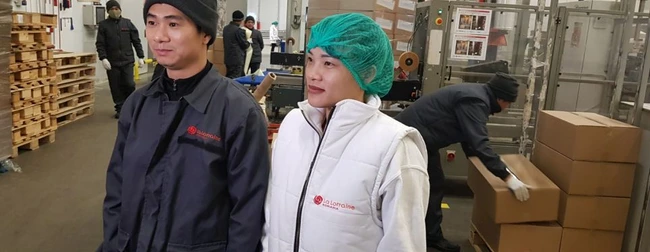 În hala modernă unde sunt împachetate în fiecare ore zeci de cutii de patiserie congelată te poţi simţi uşor ca într-o ţară asiatică. Câţiva vietnamezi se lucrează ca nişte roboţei la bandă. Unii pun pâinile semicoapte în cutii, alţii lipesc autocolante pe acestea, iar alţii le stivuiesc şi le fixează la un aparat care le învelesc bine în celofan. Produsele ţinute la rece vor ajunge în diferite supermarket-uri din ţară şi din străinătate, unde, înainte de a fi vândute vor mai fi puse o vreme la copt pentru a da acea crustă şi acel miros care-ţi dă impresia că tocmai ai ieşit din brutărie.