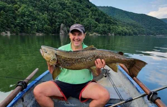 FOTO Cum arată Goliath al păstrăvilor prins de un senator în lacul Tarniţa. I-a luat 4 ore ca să-l scoată din apă
