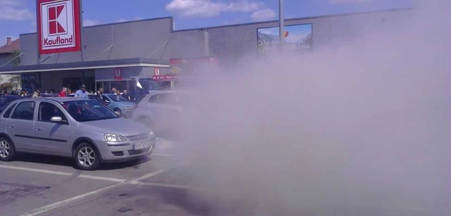FOTO Panică la supermarket. Parcarea unui complex comercial din Cluj a fost învăluită în fum