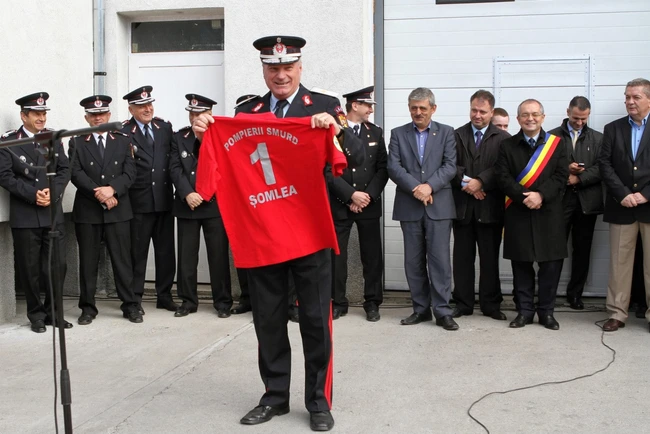La ceremonie au participat oficialităţile locale, iar printre cadourile oferite de colegi, generalul Vasile Şomlea a primit un tricou roşu cu însemnele SMURD şi numărul 1 inscripţionat pe spate, un GPS, o fotografie înrămată cu toată echipa SMURD Cluj. Iar darul de „suflet“ a fost îmbrăţişarea de grup cu care a fost copleşit de membrii echipei SMURD Cluj.