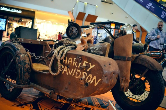 FOTO Una dintre cele mai rare motociclete create de brandul Harley-Davidson, expusă într-un mall din Cluj