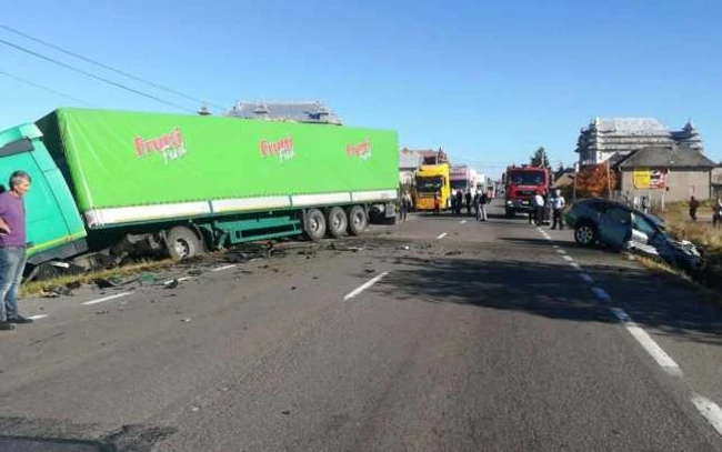 Grav accident lângă Huedin, la ieşirea spre Oradea. Doi adulţi şi doi copii au fost duşi de urgenţă la spital, după ce o maşină s-a ciocnit cu un TIR