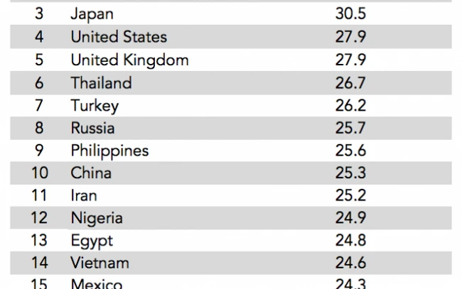 Explicaţie: În statistică au fost prinse cele mai populate ţări de pe glob; credit hartă: priceonomics.com